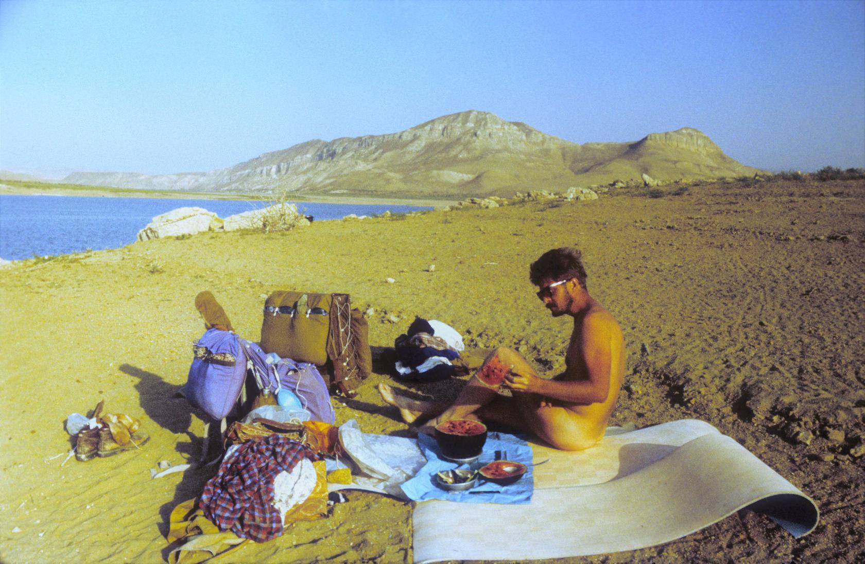 Возникшее ощущение усиливаем до предела, раздевшись и рассевшись на осеннем пригреве, и наконец поедая подаренные арбузы.