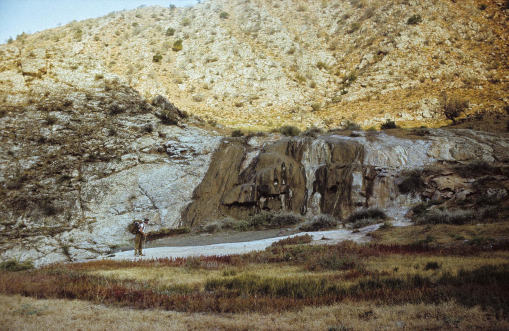 Из-под скалы бьет родник, фундаментально облицованный камнем, может, еще при хорезм-шахах. Вода течет вдоль дороги по каменному желобу,